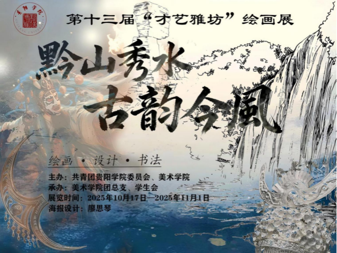 仰望黔山之巅,俯瞰秀水之畔,书画共笔,古今对砚,贵阳学院第十三届“才艺雅坊”绘画展于2025年10月17日上午在美术学院展厅开幕。